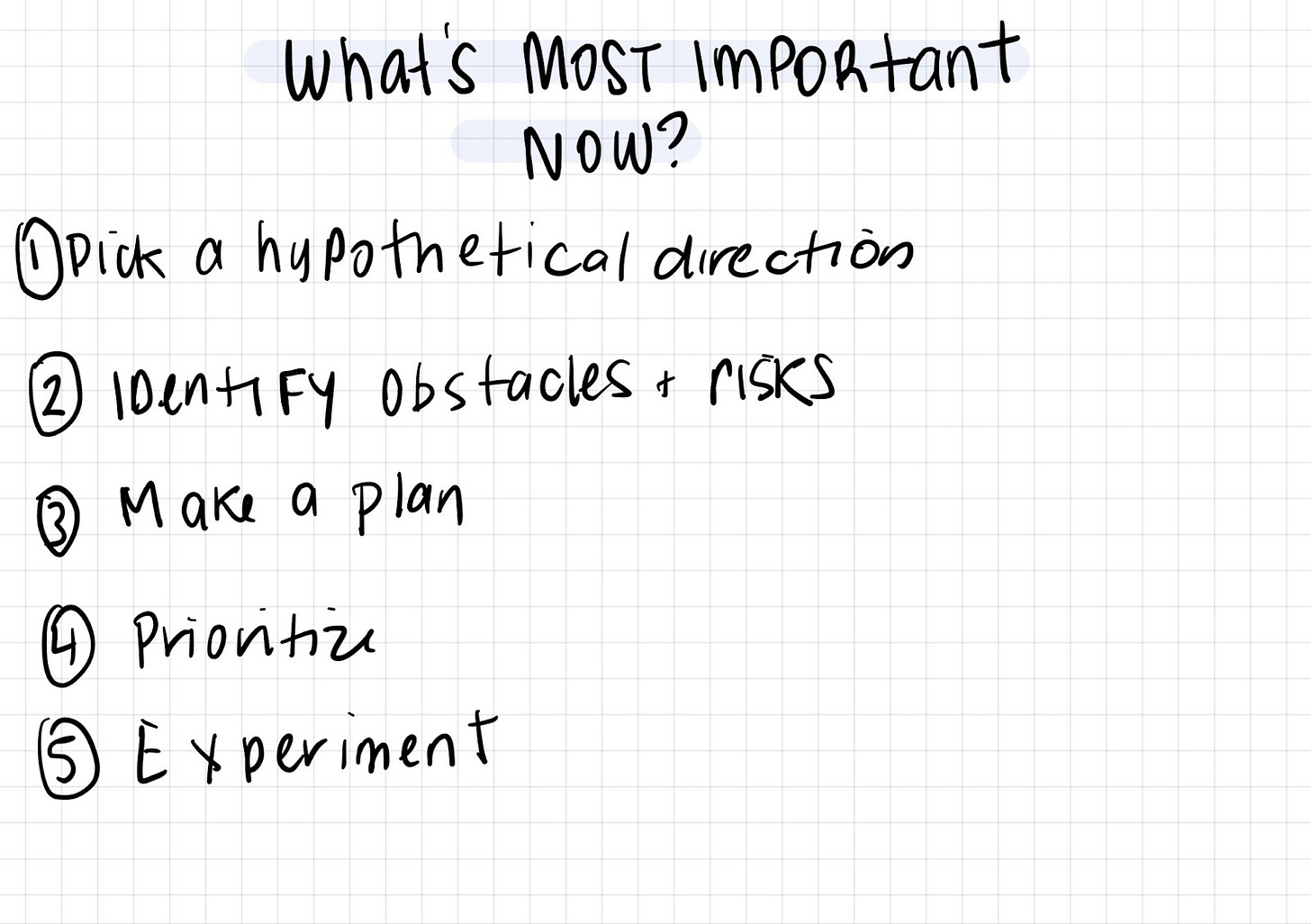 From here, I was able to draw out a loose plan until the end of the year (at which point I will decide what to do next) with some initial action steps: