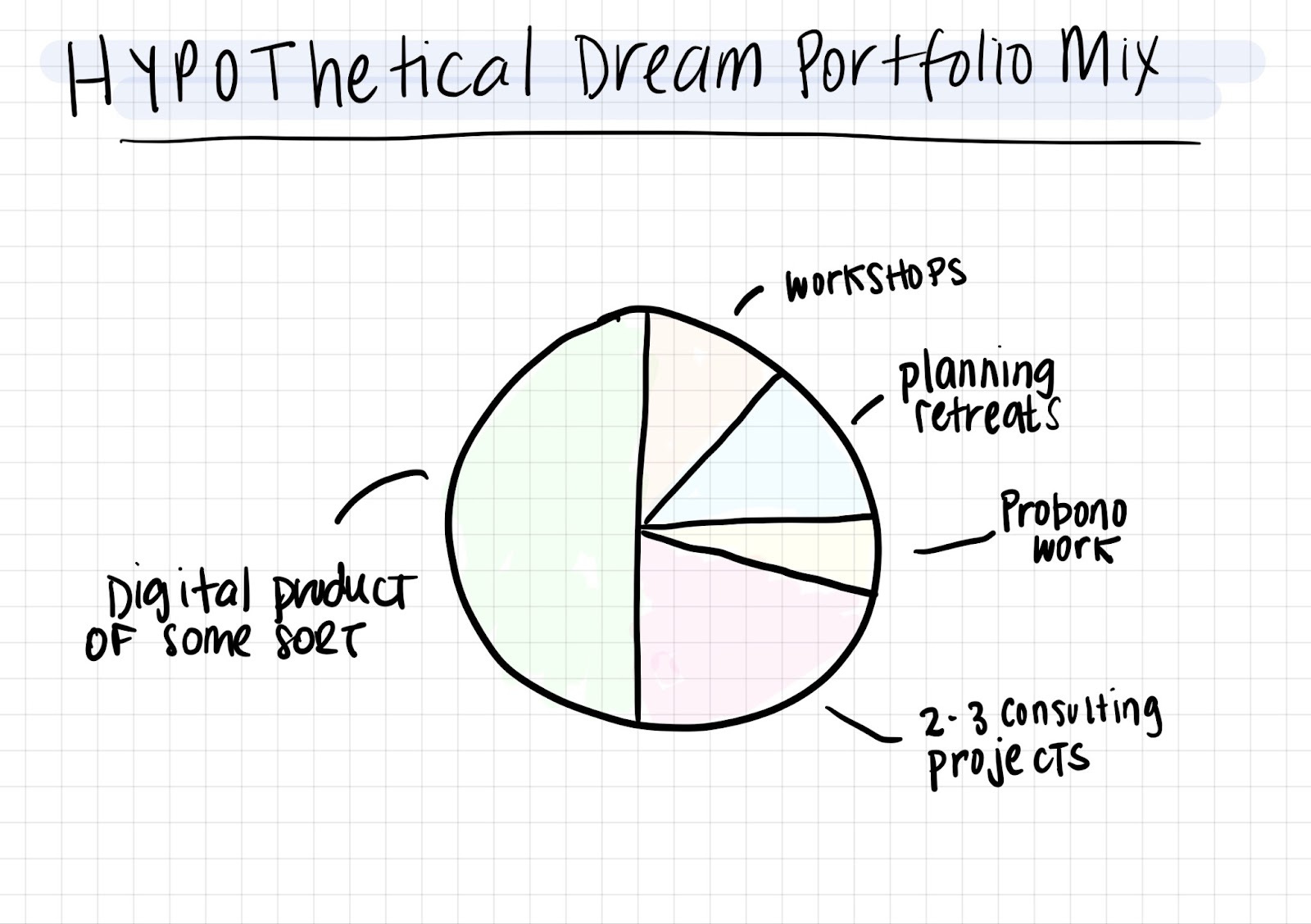 First, I drew out my dream portfolio mix based on my dream career. This would serve as a jumping-off point for experimentation.