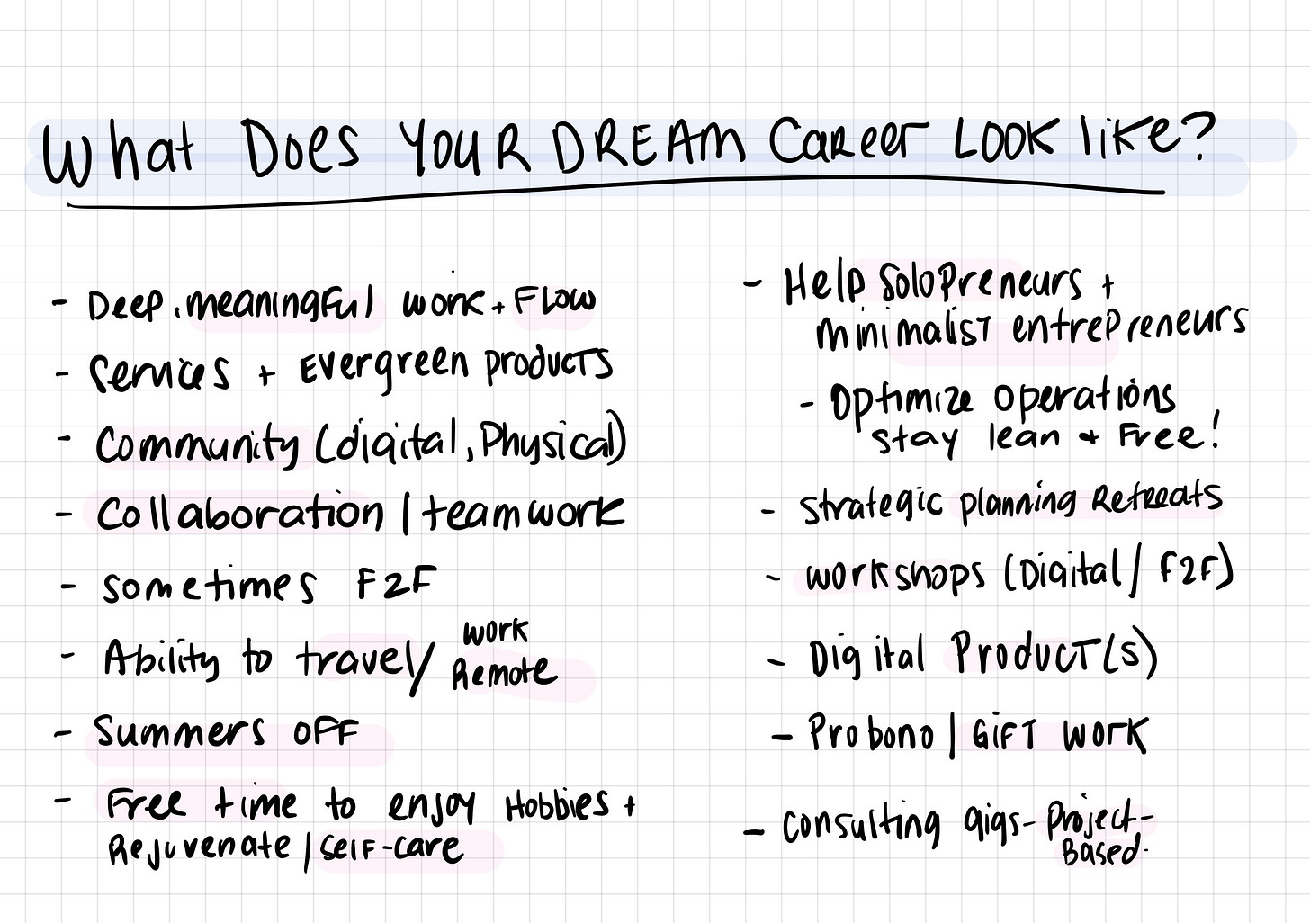This is what I came up with for a high-level vision of my dream career portfolio: